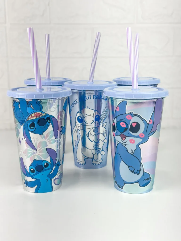 KIT 5 Copos Stitch Com Canudo