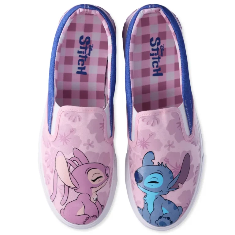💗 Slip-On Stitch & Angel Rosa com Estampa Floral 🌸 Um toque de romance nos seus passos! O slip-on rosa