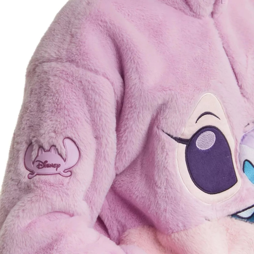 🌸 Prepare-se para se apaixonar com esse moletom peluciado da Angel! Com cores suaves em tons de rosa e lilás, ele traz o rostinho meigo da parceira do Stitch bordado com detalhes encantadores. Um moletom que parece um abraço de tão macio! 💫💕