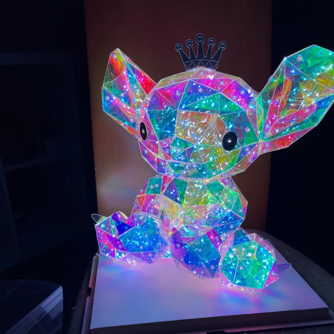 👑 Com um design exclusivo que mistura arte, luzes LED multicoloridas e o personagem mais amado da Disney, essa luminária é a sensação do momento entre crianças, jovens e adultos apaixonados por Stitch!