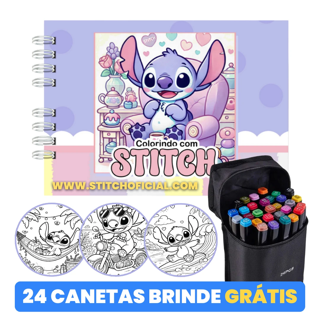 E o melhor? Você recebe um kit com 24 canetas coloridas totalmente GRÁTIS para começar a pintar assim que abrir o pacote! Um presente ideal para crianças e adultos que amam arte, cores e Stitch!