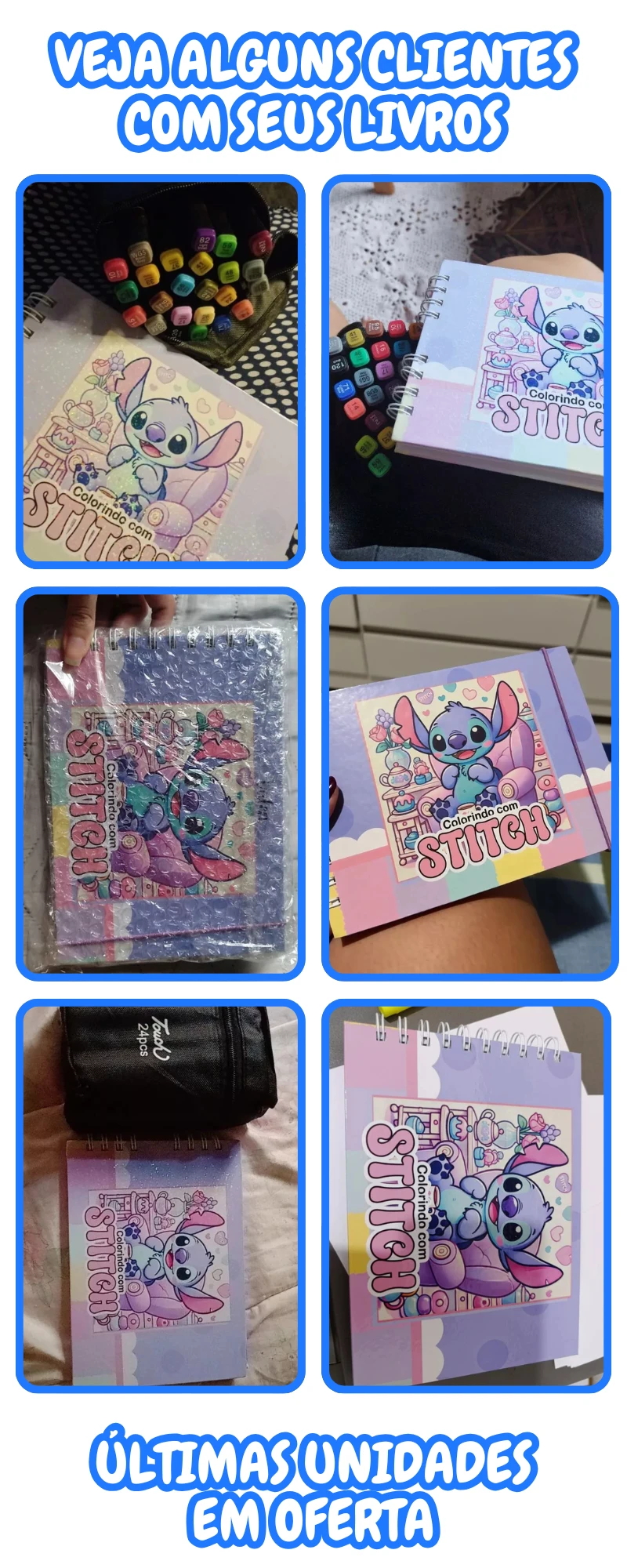 ✅ Garanta agora o seu livro de colorir Stitch + 24 canetas brinde grátis e mergulhe na criatividade!