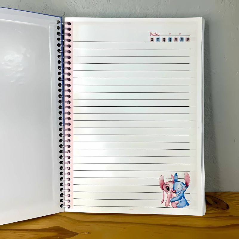 Design que destaca sua paixão: Com estampas divertidas do Stitch, este caderno não é apenas prático, mas também um reflexo do seu amor por esse personagem icônico.