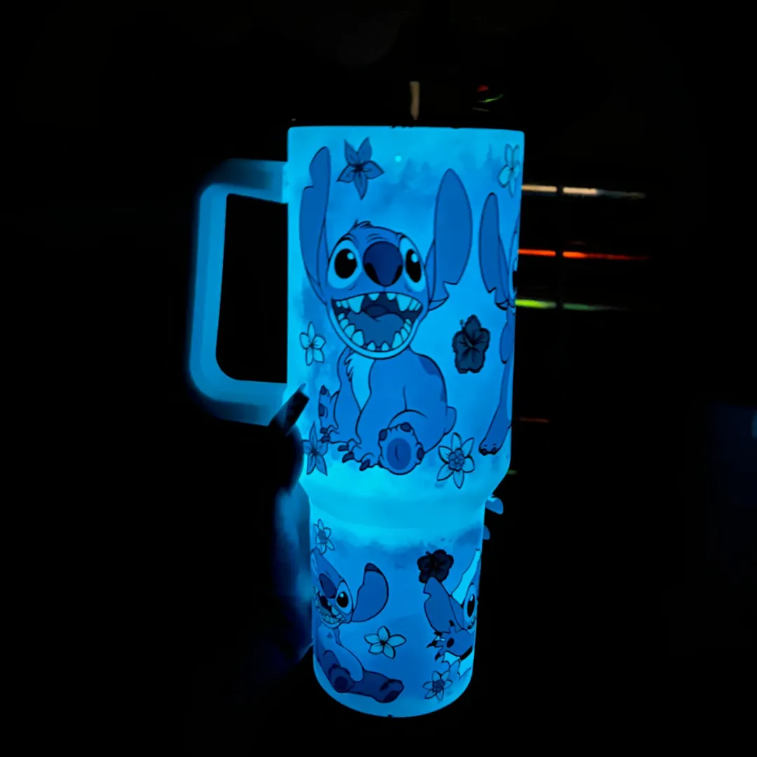 💖✨ Canecão Tumbler Stitch que Brilha no Escuro – Magia em Cada Gole, Até no Escuro! 🌙💙
