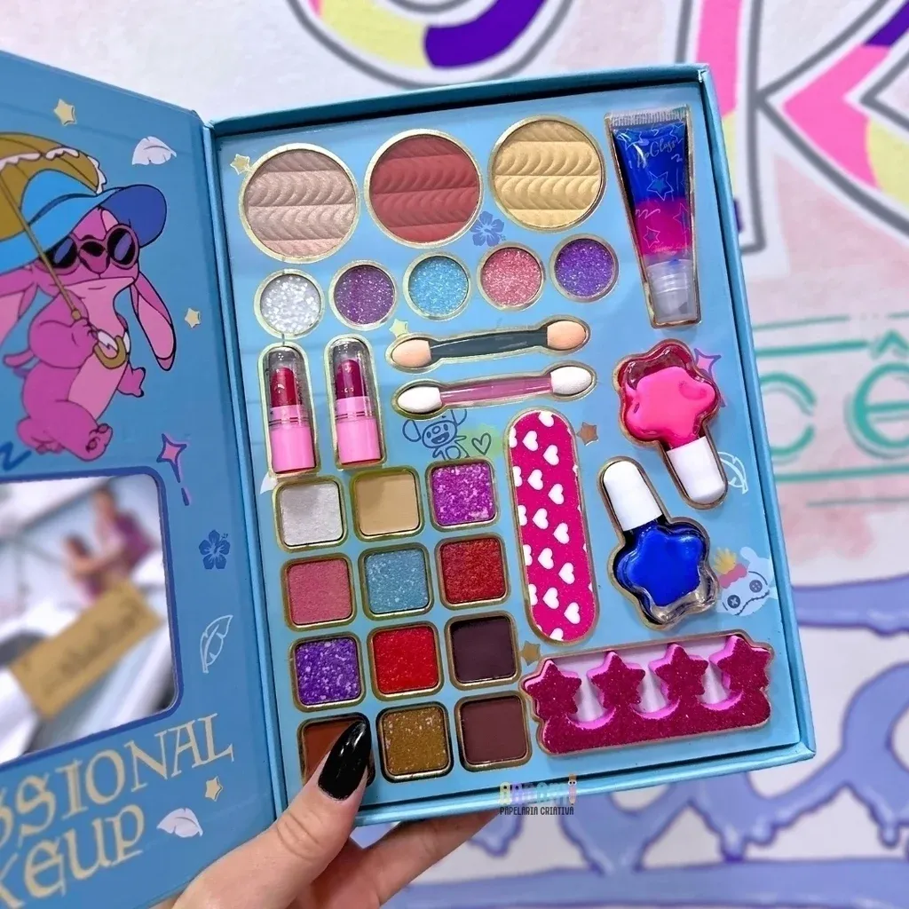 ✨ A paleta perfeita para os pequenos apaixonados por maquiagem e pelo Stitch! Com 29 itens incríveis, ela é ideal para soltar a criatividade, brincar com segurança e se sentir nas nuvens com um visual digno de princesa intergaláctica! 👑🚀