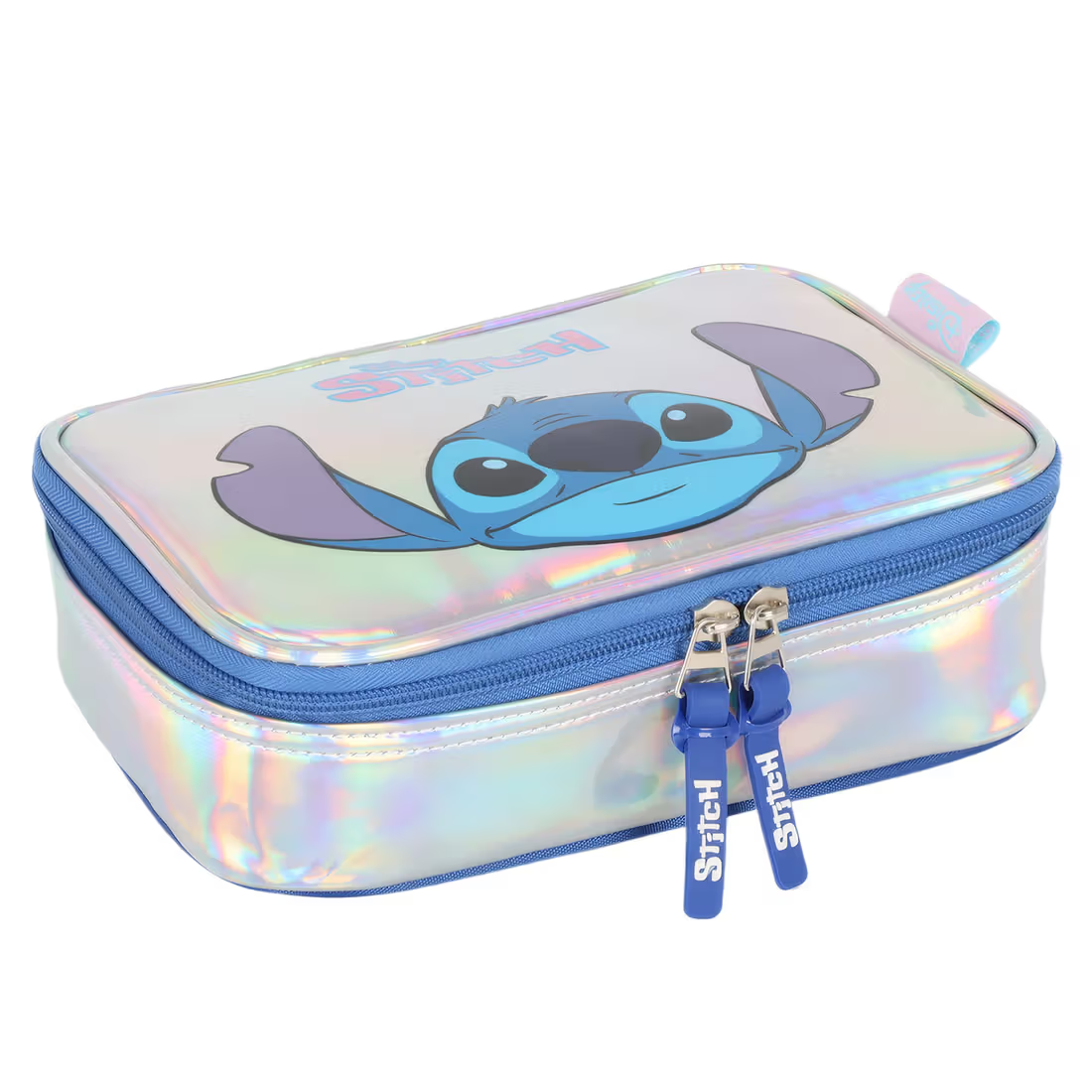 • Organização com Brilho: Com o Estojo Stitch Holográfico, as crianças têm espaço suficiente para organizar lápis, canetas e outros materiais escolares de forma prática e estilosa.