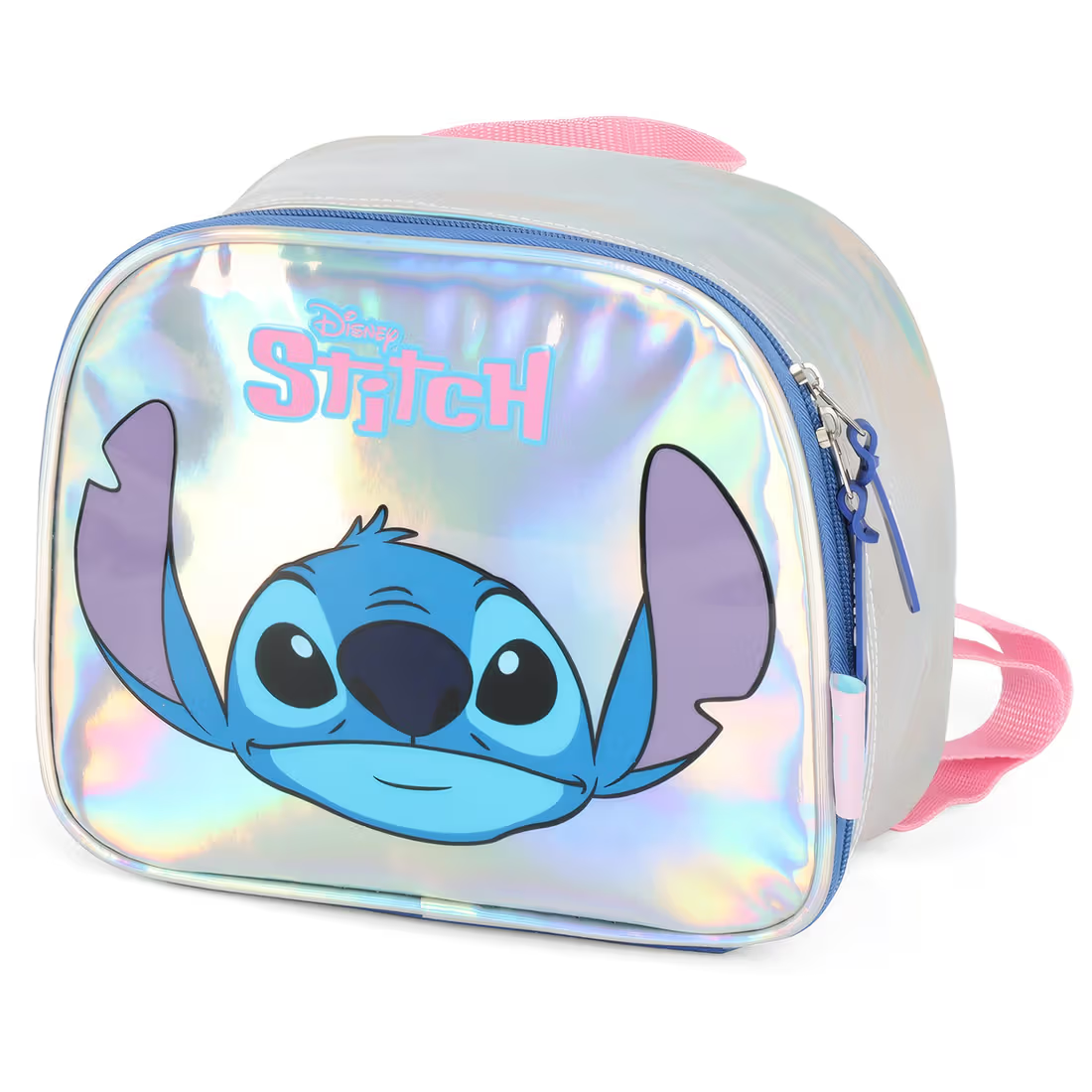 Lancheira Escolar Infantil Holográfica Stitch Prata